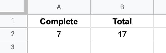 We have the value 7 in cell A2, and the value 17 in cell B2: