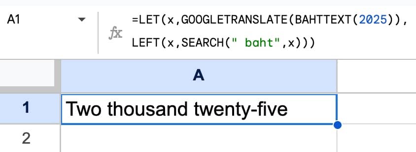Happy New Year! Another lap around the sun in the books. Wow, they go quickly don't they? ​2024 was my tenth year of working for myself in this weird little corner of the internet. And although 2024 had its challenges, there was lots to be grateful for. I'm genuinely excited to see where we go in 2025. Thank you for reading this newsletter and being part of that journey. Undoubtedly the biggest technology story of 2024 was how fast AI tools are developing and changing the way we work. In 2025, that will continue apace. I expect we'll see even bigger changes in how we work with spreadsheets and data this year. We're shifting to a world where we interact with our data via natural language (i.e. prompting) rather than technical syntax (i.e. formulas and code). This lowers barriers and lets more people mine insights from their data, not just the technically proficient. And that's a good thing. Welcome to the Google Sheets Tips newsletter #329, your Monday morning espresso, in spreadsheet form! Since it's the new year, I figured we could explore the new year number: 2025. Especially whilst we're still in that "doesn't it feel weird to write 2025 as the date?" phase. 2025 is a square numberInterestingly, anyone born in 1980, like me, will turn 45 this year. And 2025 is 45². In our Google Sheets, we can calculate squares a few different ways: =45 * 45 = PRODUCT(45,45) = MULTIPLY(45,45) = 45 ^ 2 = POW(45,2) = POWER(45,2) The POW function (a shorter version of the POWER function) raises a number to a power. ​PRODUCT and MULTIPLY multiply two numbers together. 2025 is also the sum of the numbers 1 to 9, squared. I.e. (1 + 2 + ... + 9)² = 2025 which we can calculate with this formula: =SUM(SEQUENCE(9)) ^ 2 2025 is also the sum of the cubed numbers 1 to 9. I.e. 1³ + 2³ + ... + 9³ = 2025 which we can calculate in our Sheet as follows: = ArrayFormula(SUM(SEQUENCE(9) ^ 3)) or by using a LAMBDA function: =SUM(BYROW(SEQUENCE(9),LAMBDA(i,POW(i,3)))) Finally, here's an esoteric formula that prints the number 2025 as words in our Sheet: = LET(x, GOOGLETRANSLATE( BAHTTEXT(2025)), LEFT(x, SEARCH(" baht",x))) Back to a... ahem, more practical Google Sheets tip next week! Cheers, |